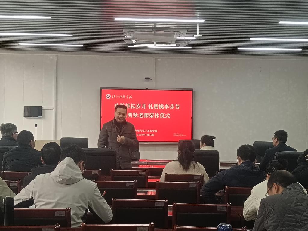 仪式现场暖意融融。院分党委副书记、工会主席戴俊代表学院,向王明秋老师为学院发展和教育事业倾注的毕生心血与无私奉献,致以崇高敬意和诚挚感谢。院长王绍明回顾了与王老师共事的难忘点滴,对其高度的责任担当与敬业奉献精神给予充分肯定,勉励青年教师以荣休前辈为榜样,提升本领、爱岗敬业、关爱学生,为学院发展注入新的活力。院分党委书记唐传球向王明秋老师送上美好祝福,希望她常回“家”看看,以新的身份继续为学院建设添砖加瓦。