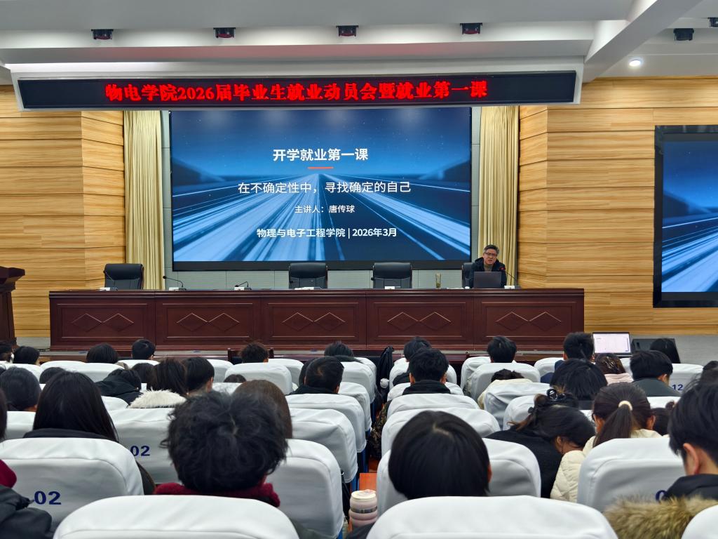 本次讲座以“在不确定性中,寻找确定的自己”为主题,唐传球从认清形势、政策护航、备战求职、树立正确就业观四个方面,为毕业生带来了一场干货满满的就业指导课。他结合最新数据与政策,分析了当前就业环境,针对学院物理学、科学教育、电气工程及其自动化、信息工程等专业,逐一解读就业方向、市场需求、专业优势与挑战,并从职业规划、能力提升、求职准备等方面给出建议,鼓励同学们打破“求稳守成”和“一次定位”的传统思维,树立“先就业、后择业”的务实态度。