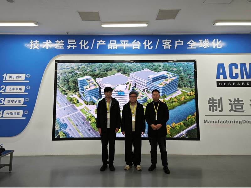 随后,学院代表走访了盛美半导设备(上海)体股份有限公司。公司人事经理带领学院一行参观了生产车间。公司生产部经理详细介绍了企业生产流程、技术优势、实习管理模式及就业岗位需求。双方就实习就业工作进行了洽谈,企业对学院实习生的表现给予了充分肯定,表示将继续为学院学生提供优质实习岗位和就业机会。唐传球一行还与在岗实习的10名学生进行了亲切交流,详细了解他们的工作、生活情况及收获,鼓励他们珍惜实践机会,提升综合能力。