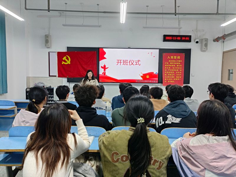 11月3日晚,bwin必赢2025年秋季入党积极分子培训开班仪式在崇文楼A509隆重举行,学生党支部书记王超然及全体入党积极分子参加此次开班仪式。